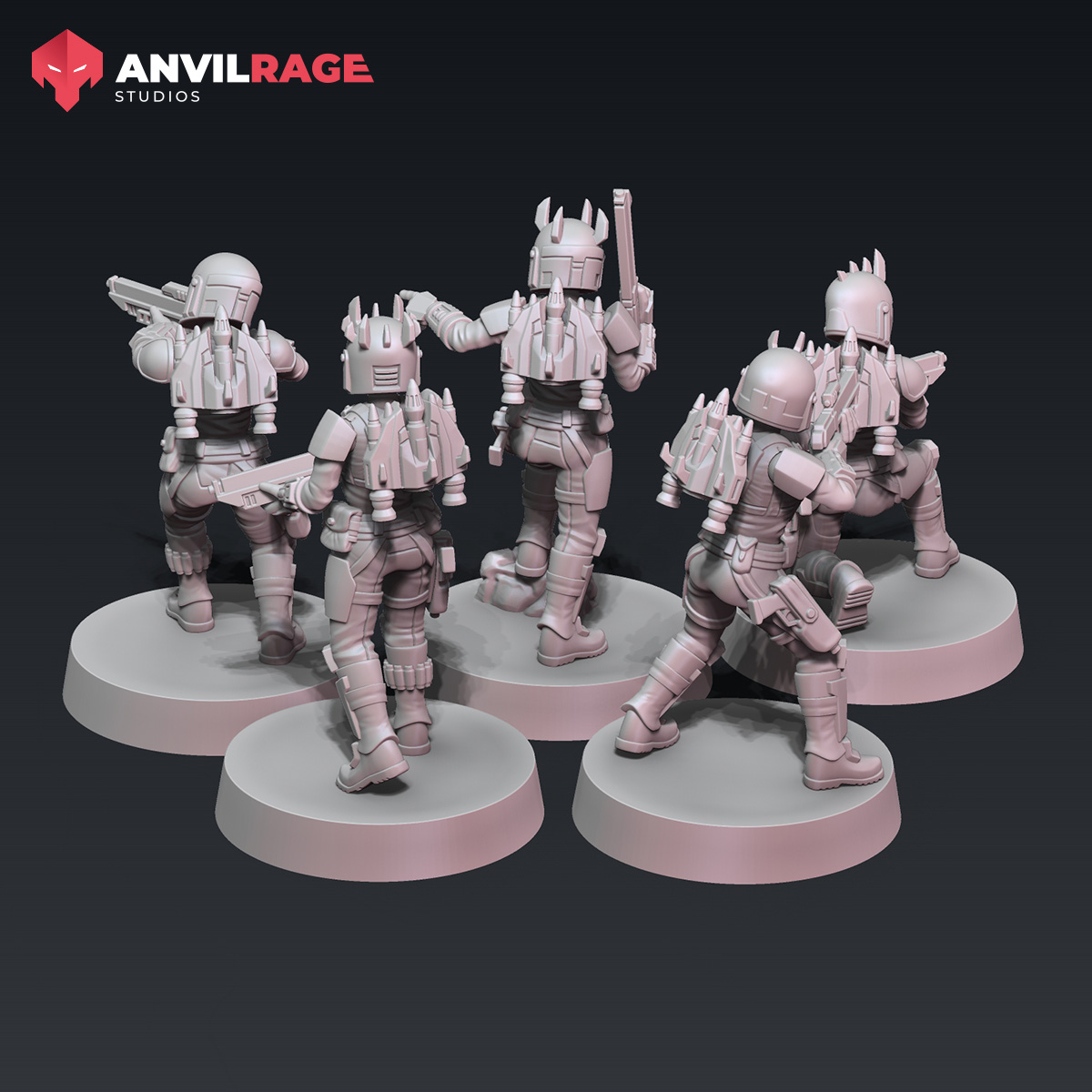 Escouades de femmes chasseuses de prime.Par 5 ou par 10. (il existe 9 options de bras pour varier les poses).Echelle 35mm. (SW)Design : Anvilrage Studios