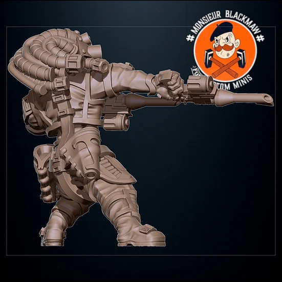 Le Questor serviteur #4 est un personnage qui pourra accompagner des personnages de type suite de nobles en tant que garde du corps ou combattant . Pour des jeux sci-fi échelle 32mm.